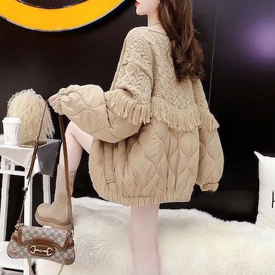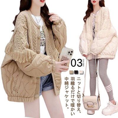 ニットと切り替え!中綿ジャケットレディースブルゾン3XL中綿ライトアウタージャケットMカーディガンきれいめおしゃれビッグシルエット大きいサイズジャケットLXL2XLフリンジ付き | OPEN-korea