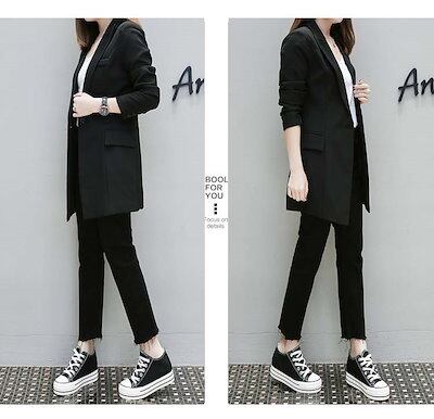 【白/黒】テーラードジャケット ロング丈 レディース ストレッチ ビジネススーツ 洗える 単品 テーラード 長袖 面接 春 夏 秋 冬 通勤 オフィス 黒 大きいサイズ 小さいサイズ アウター | OPEN-korea