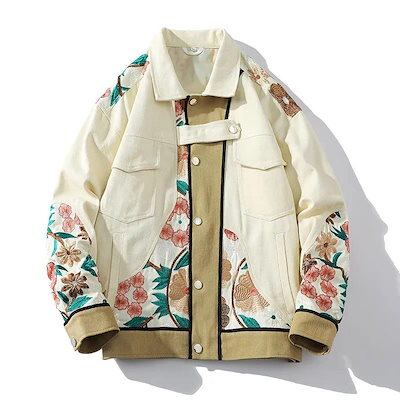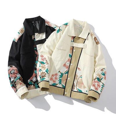 チャイナ風スタジャン 春秋 ジャケット メンズ 花柄刺繍 アウター 男女兼用 スカジャン レディース