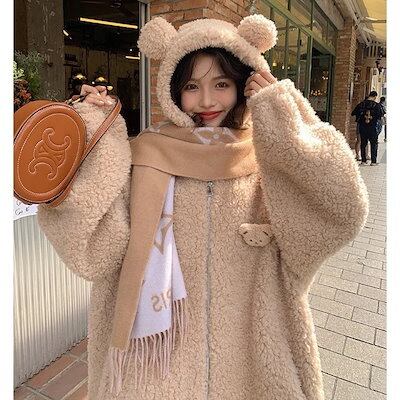 レディースパーカー ファッションカップル 長袖 コート フェイクラムズフリース コート 可愛い 暖かい アウター 大きいサイズ 中綿コート/百掛けジマウンテン スウェット トレーナー 韓国 | OPEN-korea