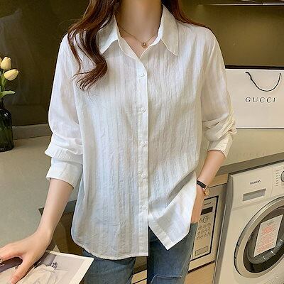 韓国ファッション コットンホワイトシャツ2024春秋の新作ゆったりトップスコットン 今っぽシアーシャツ 長袖 ブラウス レディース オフィス シャツ カーディガン