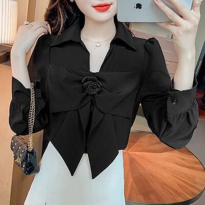 シャツ レディース 長袖フランス リボン本 ポロカラー レディースシフォンシャツ 上着 韓国ファッション