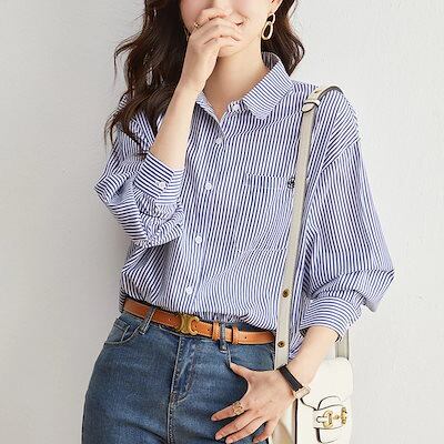 今っぽシアーシャツ 長袖 韓国 ブラウス レディースブルーストライプシャツ女性長袖春秋新作着やせシャツトップス ファッション オフィス シャツ