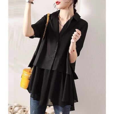 2024 サマーシャツ シフォンブラウス ブラウス?今っぽシアーシャツ 長袖ブラウス Tシャツ シフォンシャツ tシャツ 着痩せブラウス 半袖/トップス/ブラウス レディース レディース | OPEN-korea