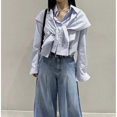 今っぽシアーシャツ レディースシャツ 春秋の新作 韓国ファッション ストライプのシャツ 長袖シャツ ゆとりがある カジュアル