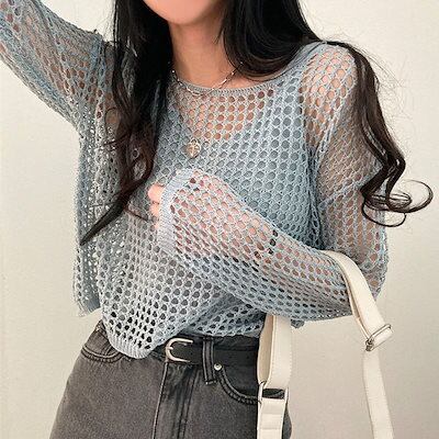 今っぽシアーシャツ レディース 春秋の新作 韓国ファッション 薄手ニット 長袖 日焼け止めカバー 2点セット