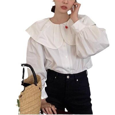 ブラウス レディース 韓国系ins 復古 ベビーカラー シャツ 長袖シャツ