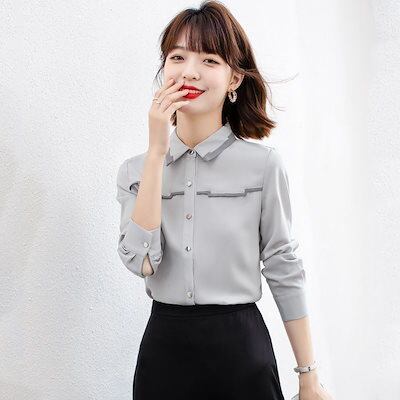 2024 春夏シャツ 通勤 OL シフォンシャツ長袖服とトップス レディース ブラウス 韓国ファッション