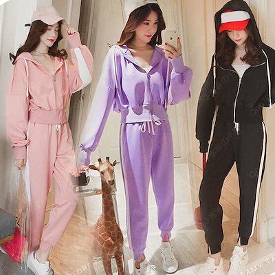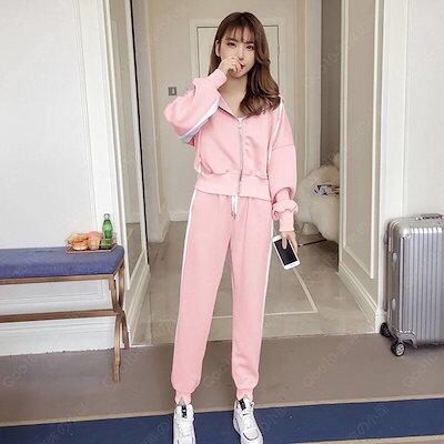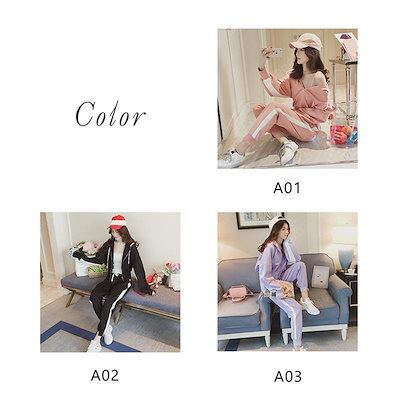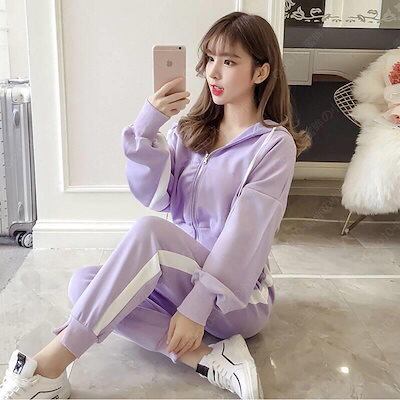 ジャージ 上下セット レディース スウェット フード付き 2点セット 長袖 トレーナー ロングパンツ パーカー 運動服 部屋着 おしやれ 着痩せ 春秋-50