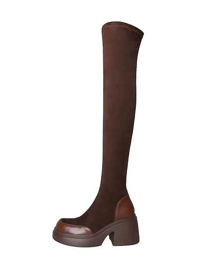 韓国ファッション ロングブーツ 厚底ブーツ レディース 靴 ヒール ブーツ 美脚効果 着痩せ ロングブーツ