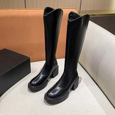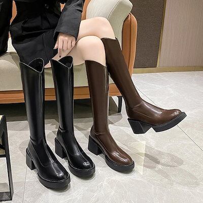 韓国で大人気ロングブーツが復活! 韓国ファッション ロングブーツ 大きいサイズ 厚底ブーツ レディース 靴 ヒール 美脚効果 シンプル 着痩せ ロングブーツ