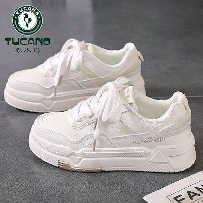 美脚シューズ 運動 レトロ紐スニーカー 通勤通学靴フラット厚底スニーカー 韓国 レディース 配色