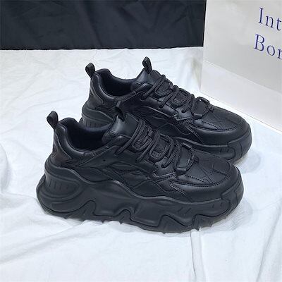 厚底シューズブラック ダットスニーカー レディース 2024 厚底靴 松?靴 小柄 身長アップ ソフトレザー スニーカー J-X45