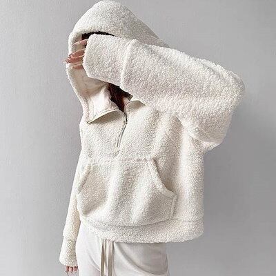 トップス プルオーバー パーカー ボアジャケットレディース 長袖 ストリート ファスナー ポケット アメカジ ハーフジップ 厚手 大人可愛い シンプル カジュアル おしゃれ かっこいい レトロ ラフ | OPEN-korea