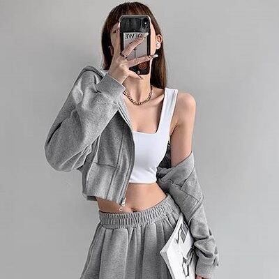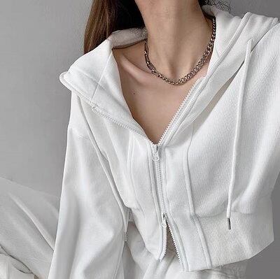 トップス パーカー 前開き ショート丈 レディース 長袖 フード ストリート ファスナー アメカジ ジッパー 大人可愛い シンプル カジュアル おしゃれ ラフ メンズライク マニッシュ ボーイッシュ | OPEN-korea