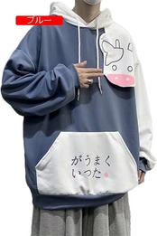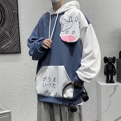 パーカー 乳牛 かわいい メンズ レディース 切り替え フード付き 長袖 大きめ フルオーバー 春秋冬服 ポケット付き ビックシルエット お洒落 軽量 快適 日系 きれいめ カップル | OPEN-korea