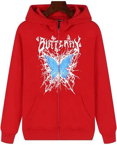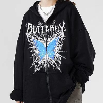 ジップアップパーカー レディース メンズ クールゴス パーカー パンク アウター バタフライ柄 コート フード スウェット ファスナーパーカー 大きめ きれいめ カジュアル 春 秋 冬 サブ | OPEN-korea