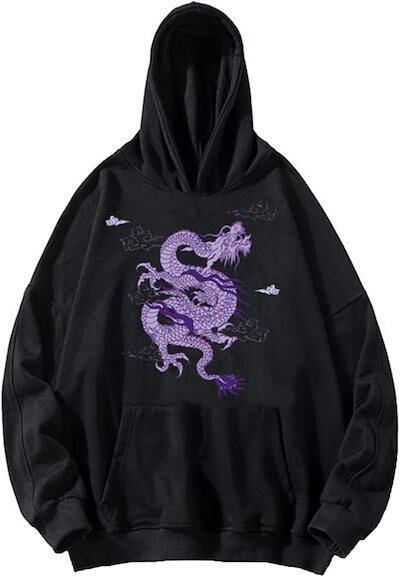 メンズ xs-3xl 龍柄 パーカー フルオーバー 長袖 男女兼用 原宿風 b系 レディース ドラゴン 小さいサイズ ドローストリング付き 秋冬 ポケット付き フード付き 防風防寒 ペアルック 誕生日 | OPEN-korea