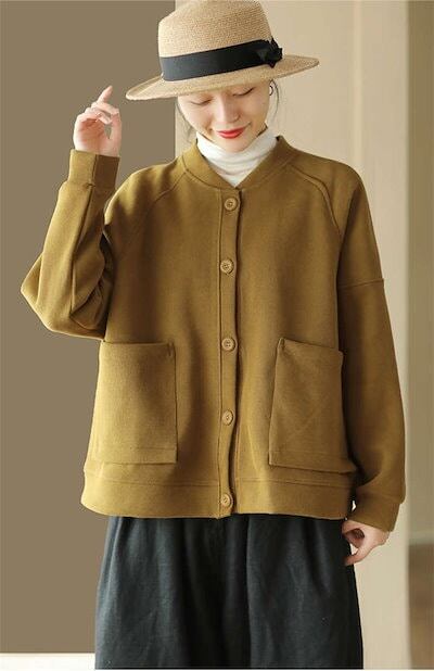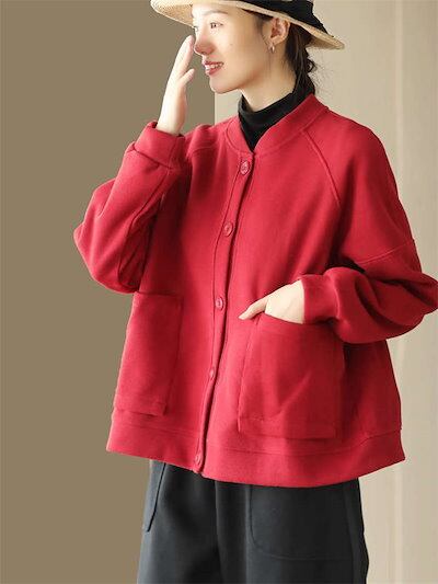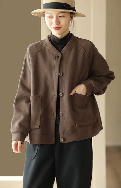 ジャケット ブルゾン スタジャン レディース スウェット カーディガン トレーナー トップス 春 秋 秋冬 ライトコート トップス ボタンノーカラー 無地 羽織り ポケット ビッグシルエットシンプル | OPEN-korea