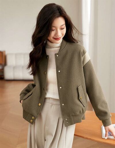 スタジャン ジャケット ブルゾン ノーカラージャケット レディース 春 秋 上着 羽織り 秋冬 ライトアウター アウター カーディガン ジャンパー 長袖 ノーカラー 楽ちん デート ディリー 普段着 | OPEN-korea