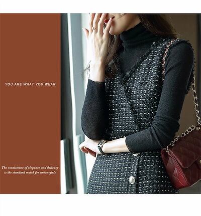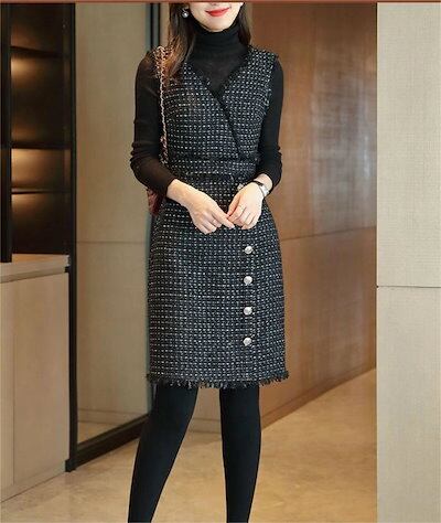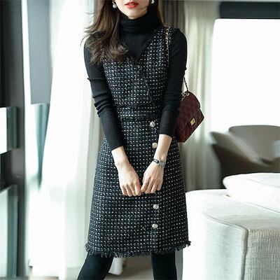 ジャンパースカート 大人 ツイードワンピース 秋冬 レディース 上品 ワンピース チェック ツイード ジャンパースカート 通勤 大人 ジャンスカ Vネック ワンピ 膝丈 仕事 オフィス 事務所 OL | OPEN-korea