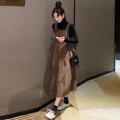 ジャンパースカート ジャンスカ サロペット キャミワンピース レディース キャミワンピ ミモレ丈 ワンピース サロペットスカート オールインワン オーバーオール ロンパース シンプル 重ね着 可愛い | OPEN-korea