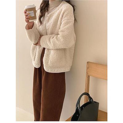 ボア ブルゾン ジャケット レディース ノーカラージャケット アウター ジャンバー 羽織り 長袖 秋 冬 あったか オーバーサイズ フードなし ボアジャケット ノー