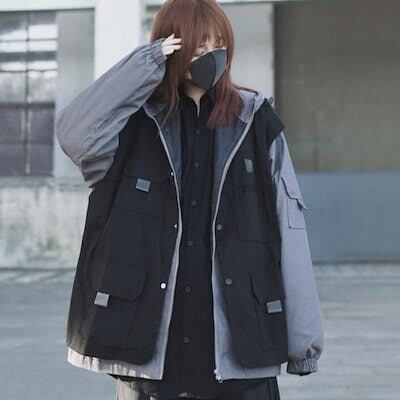 マウンテンパーカー レディース 切替 ジャンパー 重ね着風 フード 秋物 ジャケット 春コート カジ
