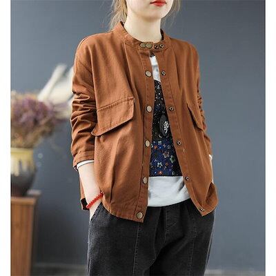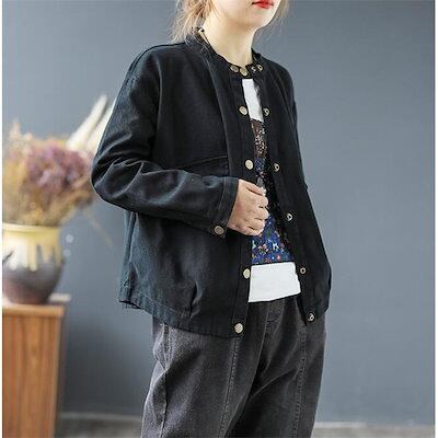 ノーカラージャケット レディース 綿麻 秋服 ジャケット カジュアル 20代 30代 40代 50代