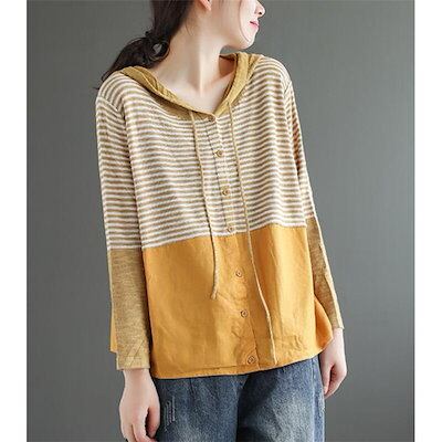 ジャケット レディース 綿麻 ニット 切替 フード付き アウター 薄手 春物