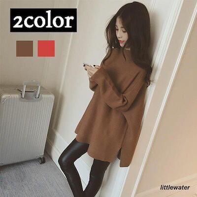 新製品 ニット セーター レディース 女性用 トップス 長袖 ハイネック チュニック丈 無地 ハイゲージ シンプル カジュアル おしゃれ かわいい ゆったり