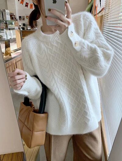 日系 ツイスト レトロ セーター 怠惰風 ゆったり 柔らかい 人気なリプニット 秋冬 プルオーバーデザイン トップス レディース