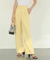 スラックスレディースストレートパンツきれいめワイドパンツスラックスパンツハイウエストパンツセンタープレスワイドタックパンツタックボトムスゆったり体型カバーキレイめパンツオフィス秋冬春夏秋冬 | OPEN-korea