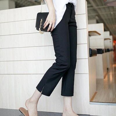 コーデュロイ 【お勧め商品】 スーツパンツ ストレート 裾スプリット 八分丈 おしゃれ レディース 通勤 スラックス ハイウエスト ママパンツ