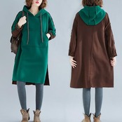 裏起毛 パーカー ロングパーカー 切り替えパーカー パーカーワンピース トレーナー スウェット スエット ミディアム ロング レディース 長袖 オーバーサイズ ポケット 温かい 防寒 秋冬 | OPEN-korea