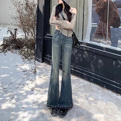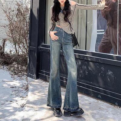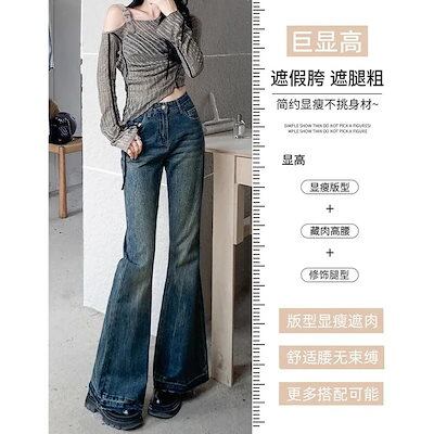 2024年秋冬レディースレトロブーツカットジーンズ新型アメリカンハイウエストスリムワイドフレアパンツ