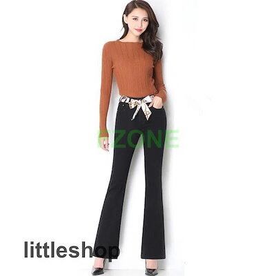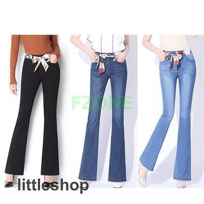 フレアパンツ レディース デニムパンツ ハイウエスト ボトムス ジーンズ ブーツカット スキニー スリム オフィス 通勤 OL 美脚