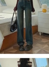 レディース 秋 冬 ハイウエストストレートデニム韓国ファッション着痩せ脚長効果裏起毛ロングパンツ