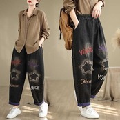 「ファットガール」 2024秋新品 ロング デニムパンツ 星柄 大きいサイズ 体型カバー レディース ゴム ジーンズ メガ割30%までに制限