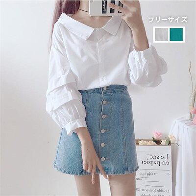 シャツ レディース ブラウス 折り襟 トップス ランタンスリーブ 無地 長袖 カジュアル 学生風 韓国風 気質 春物 優雅 女子 インナー レトロ 春服