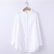 ガーゼ シャツ ガーゼシャツ レディース ブラウス 長袖 スタンドカラー 白シャツ 春夏 秋 立ち襟 チェック柄 無地 綿100% 2重ガーゼ