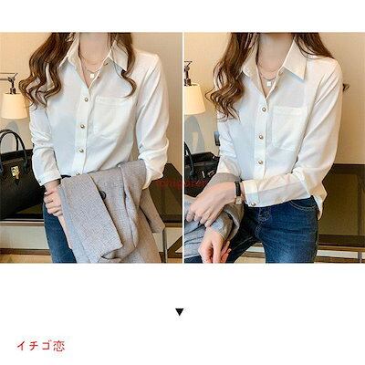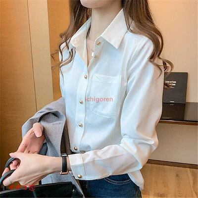 超人気 白シャツ シャツ ブラウス トップス 前開き レディース 折り襟 長袖 無地 コーデ シフォン ベーシック ゆったり シンプル カジュアル きれいめ オシャレ 春 冬 | OPEN-korea