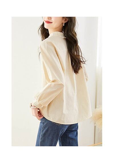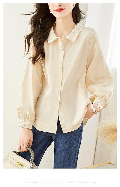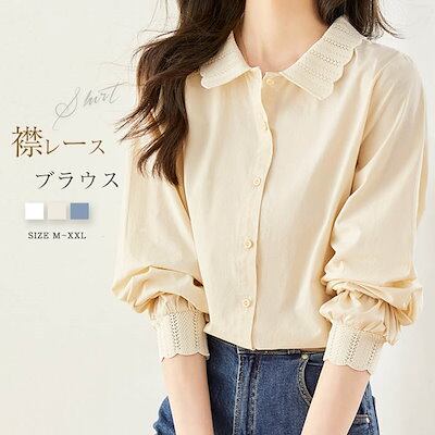 ブラウス 長袖 レディース シャツ 襟レース シャツブラウス 春秋 チュニックブラウス トップス レース コットン 無地 長袖シャツ 柔らか ゆったり 着痩せ ベーシック ホワイト 白 ベージュ エレ | OPEN-korea