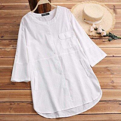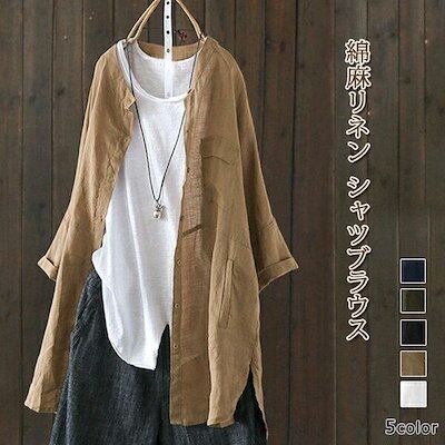 シャツ レディース 七分袖 ブラウス トップス 綿麻 麻混 羽織 シャツブラウス 立ち襟 春 夏 秋 長袖 体型カバー ゆったり オシャレ 通勤 送料無料