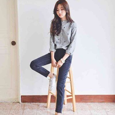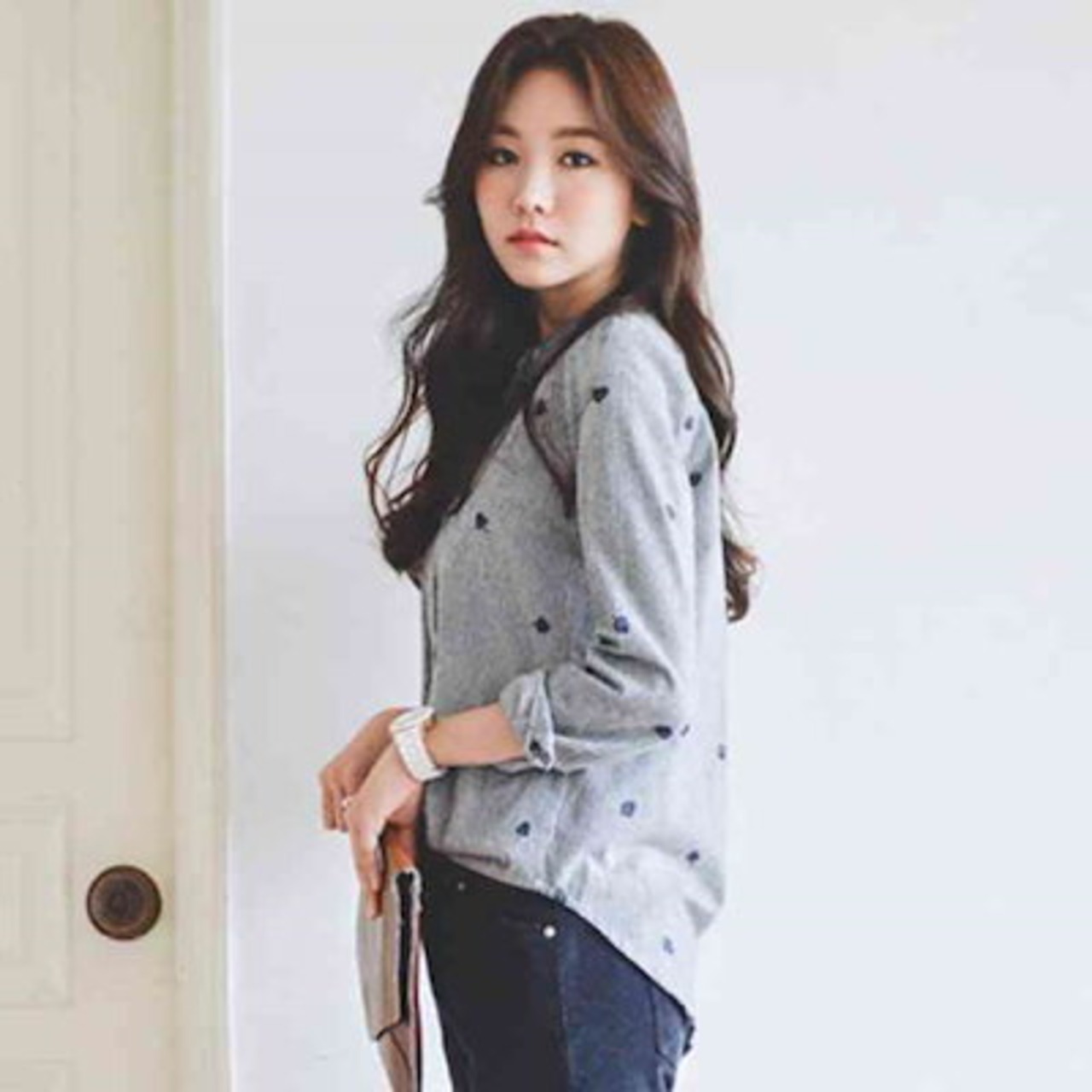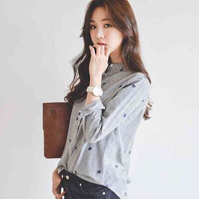 全2色×5サイズ!刺繍トップス シャツ レディース 長袖シャツ カジュアルシャツ ストライプシャツ ブラウス トップス スタンドカラー 立ち襟 カレッジ風 刺繍 かわいい シンプル ゆったり | OPEN-korea