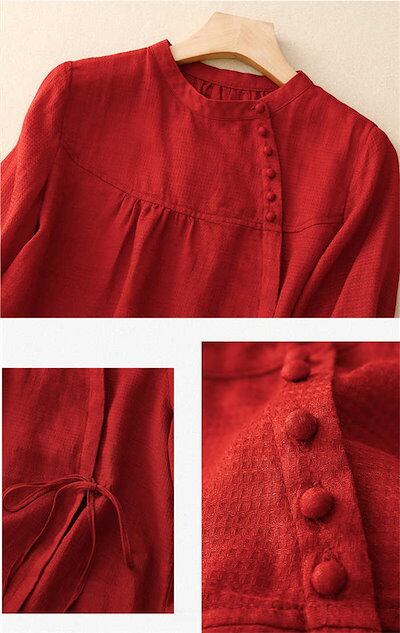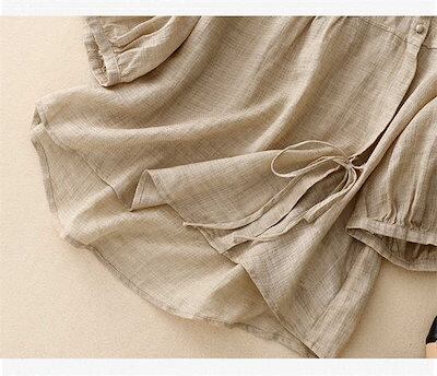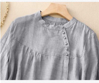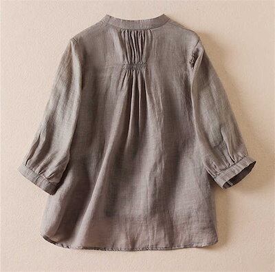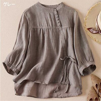ブラウス シャツ ブラウスシャツ トップス レディース 春 夏 秋 無地 ぽわん袖 立ち襟 五分袖 七分袖 おしゃれ かわいい オフィス 夏服 綿麻 シャツ シンプル エレガント きれいめ 大きいサイ | OPEN-korea