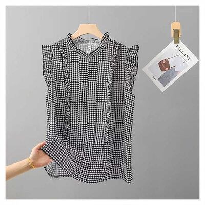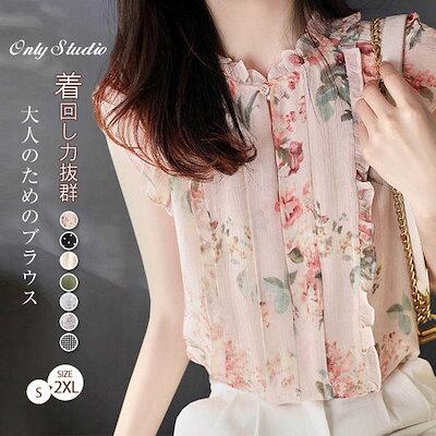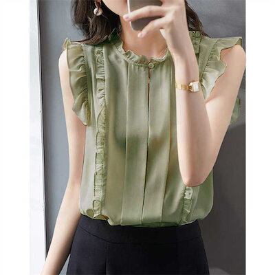 即納 ブラウス レディース フリル ノースリーブ シャツ トップス 大人 ガーリー カジュアル 夏 夏服 シャツブラウス タンクトップ シフォン ブラウス スカラップ襟 重ね着 シンプル オフィス デ | OPEN-korea