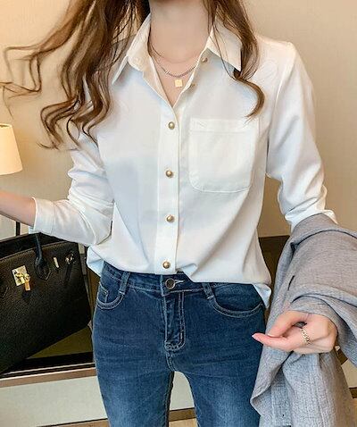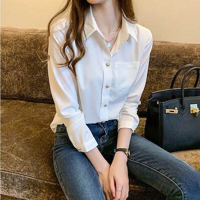シフォン シャツ ブラウス レディース 長袖 スーツ インナー 白シャツ トップス フォーマル 無地 ホワイト 白 オフィス ビジネス 立ち襟 開襟 春秋 春 秋 お洒落 通勤 ワイシャツ カジュアル | OPEN-korea