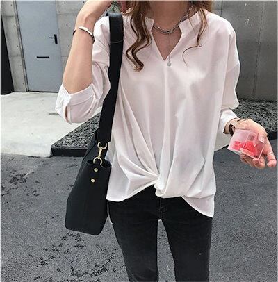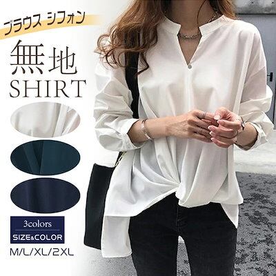 ブラウス シフォン 抜き襟 スキッパーシャツ カシュクール トップス シャツ レディース 夏ブラウス 無地 フォーマル ホワイト/ダークグリーン/ネイビー 長袖 オフィス 春夏 秋 カジュアル きれい | OPEN-korea