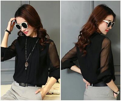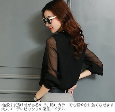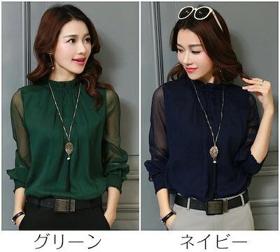 ブラウス シャツ レディース トップス 大人 上品 薄手 長袖 無地 高襟 立ち襟 ビジネス フリル衿 シフォン タックブラウス 入学式 卒業式 おしゃれ シンプル 通勤 会社 OL 夏 春 | OPEN-korea